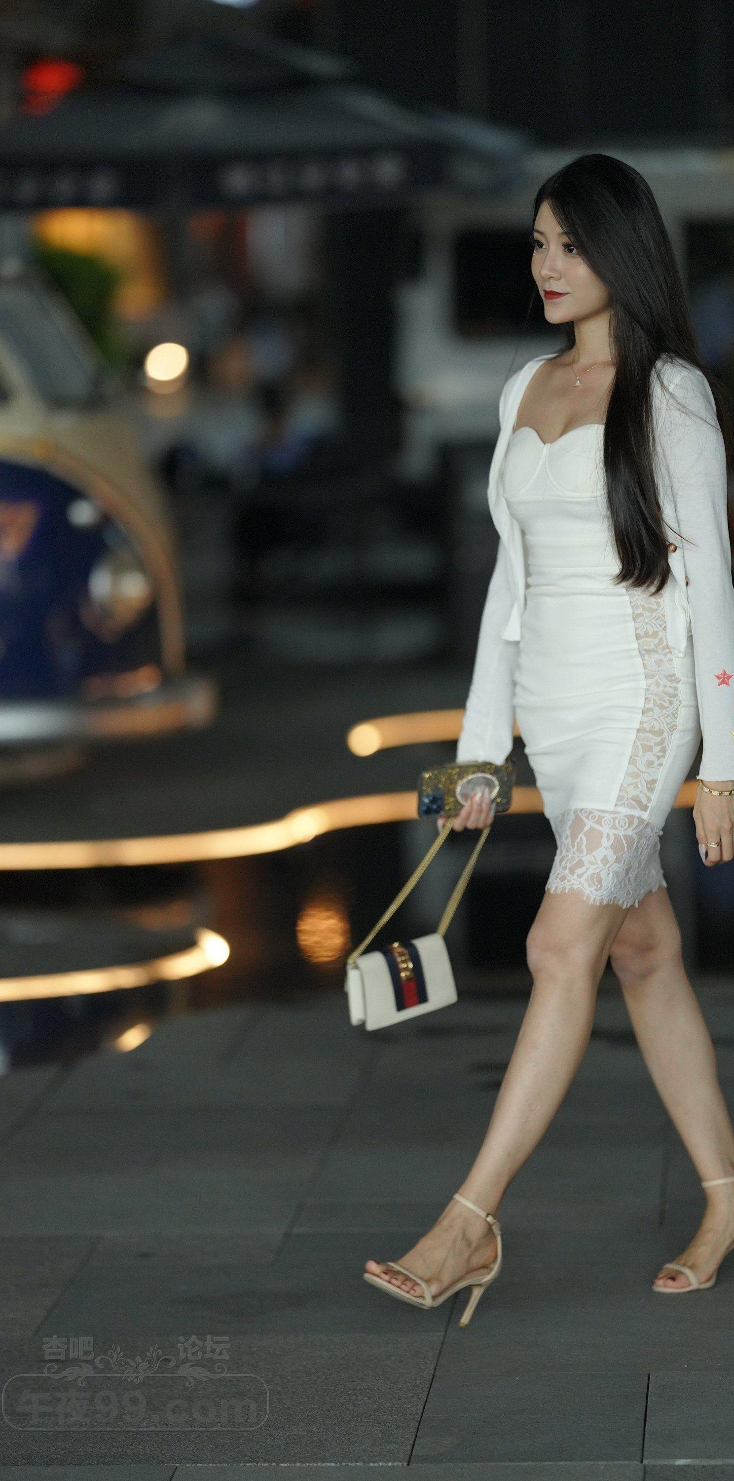 白色吊带裙高跟凉鞋美女模特修长美腿吸睛【10P】
